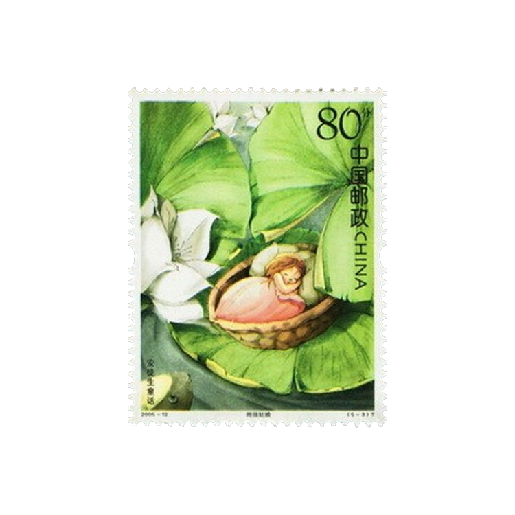 2005年6月1日,为庆祝国际儿童节和纪念丹麦作家安徒生诞辰200周年,国家邮政局发行了《安徒生童话》特种邮票,全套5枚,小本票1本,同时发行不干胶版张(版式二)1套1版。