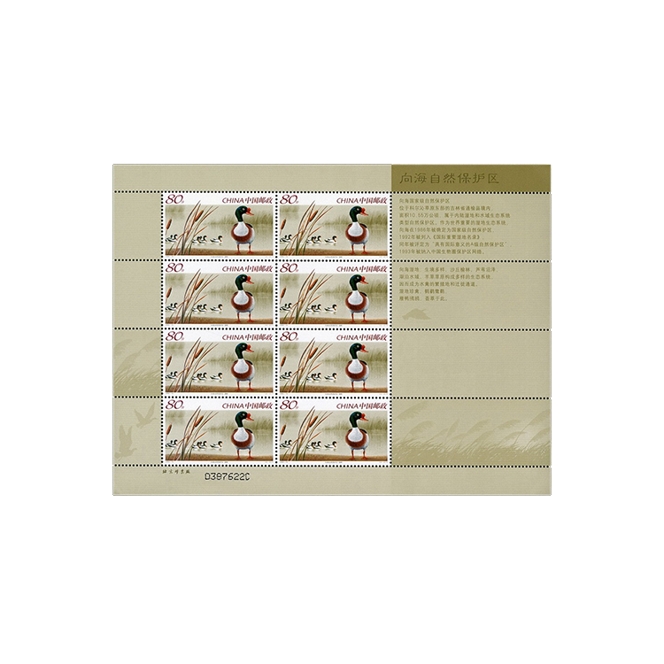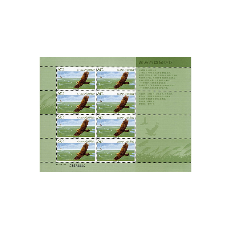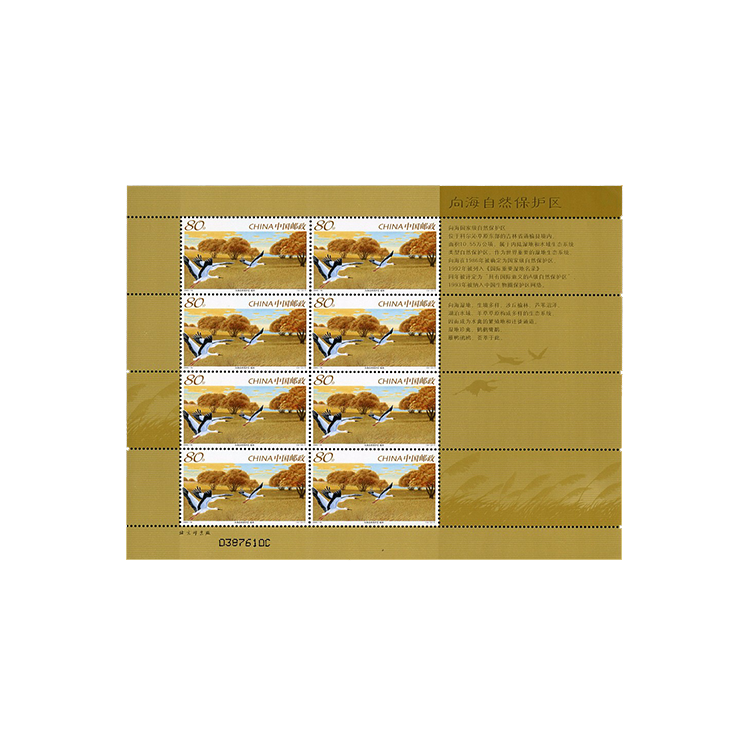 2005年7月30日,为了展现中华山河的壮美和宣传保护野生动植物的重要意义,国家邮政局发行了《向海自然保护区》特种邮票,全套4枚。