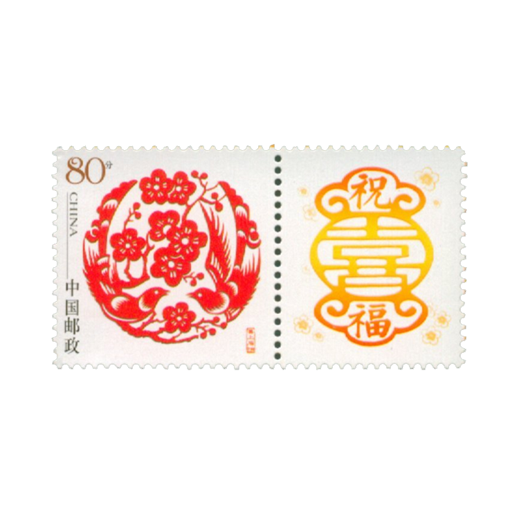 邮票的主体图案为剪纸样式的梅花与家燕,“梅”与“眉”同音,家燕则有报喜之一,燕子飞上梅花枝头,恰好形象地表现了“喜上眉梢”这一含义,附票同样以剪纸的形式照应了主题,这也侧面宣扬了中国传统文化。