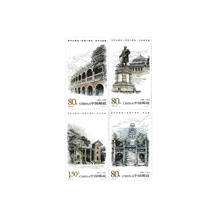 国家邮政局定于2006年11月12日发行《孙中山诞生一百四十周年》纪念邮票1套4枚。