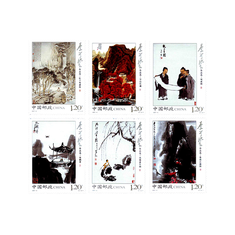2007年3月26日发行《李可染作品选》特种邮票1套6枚。