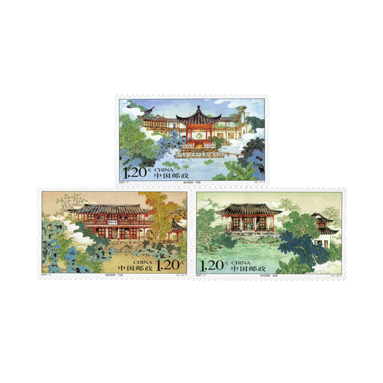 2007年4月8日发行《扬州园林》特种邮票1套3枚。