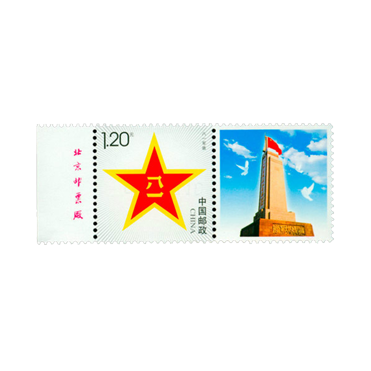 在中国人民解放军建军80周年前夕,7月15日,中国邮政发行了“八一军徽 ”个性化邮票1种,主图为闪光的军徽,附图图案为南昌起义纪念碑。