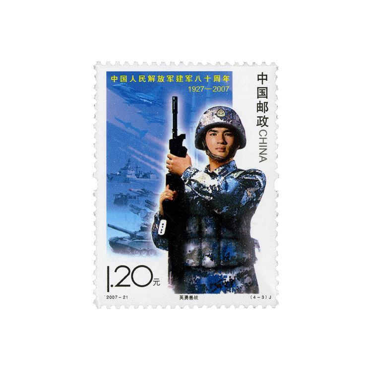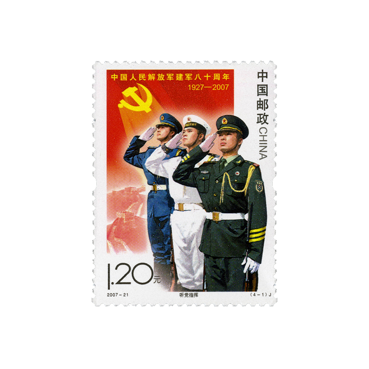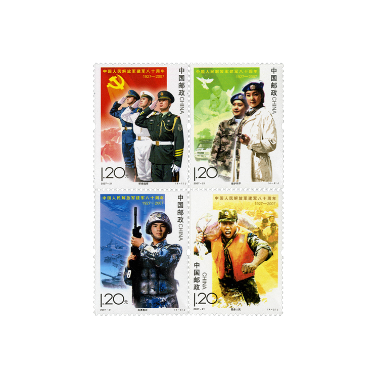 2007年8月1日发行《中国人民解放军建军八十周年》纪念邮票1套4枚。