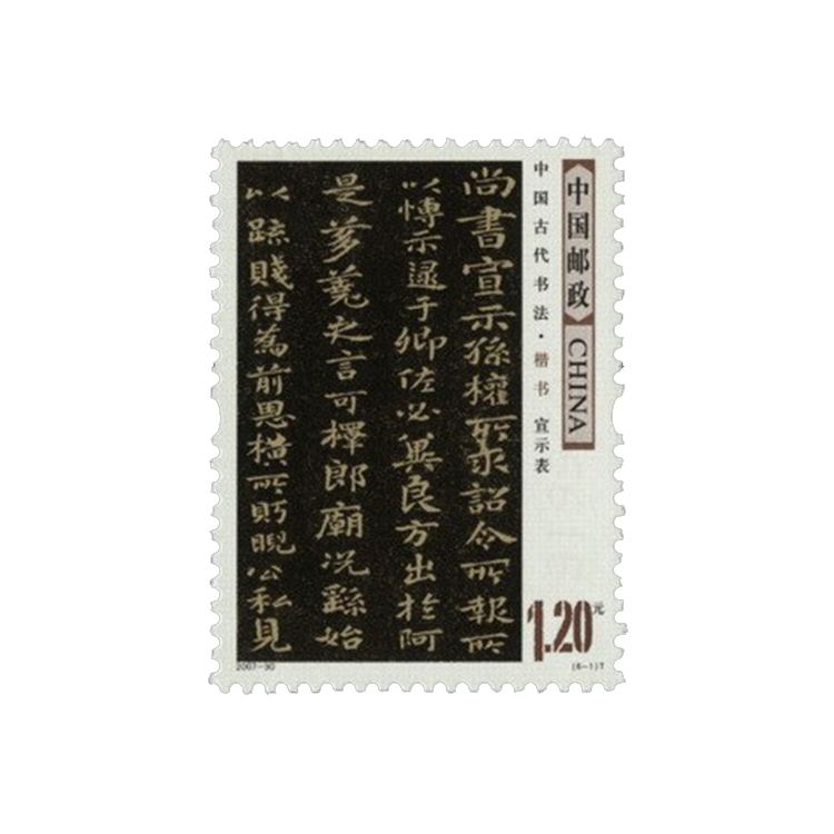 2007年11月5日发行《中国古代书法-楷书》特种邮票1套6枚。