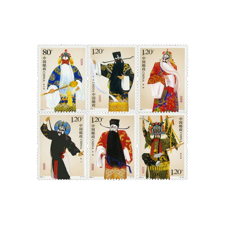 2008年2月23日发行《京剧净角》特种邮票1套6枚。