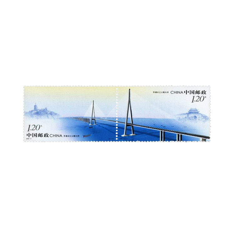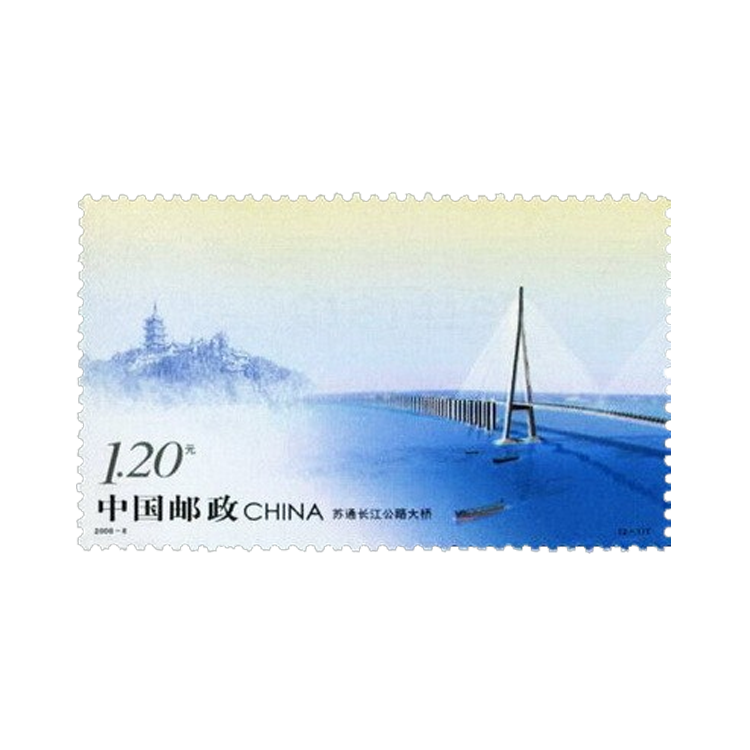 2008年4月12日发行《苏通长江公路大桥》特种邮票1套2枚。