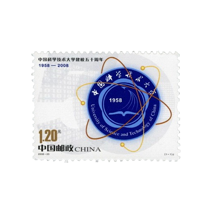 为纪念中国科学技术大学50周年华诞,中国邮政于2008年9月20日发行《中国科学技术大学建校五十周年》纪念邮票,一套一枚,面值120分,邮票规格:40x30毫米。
