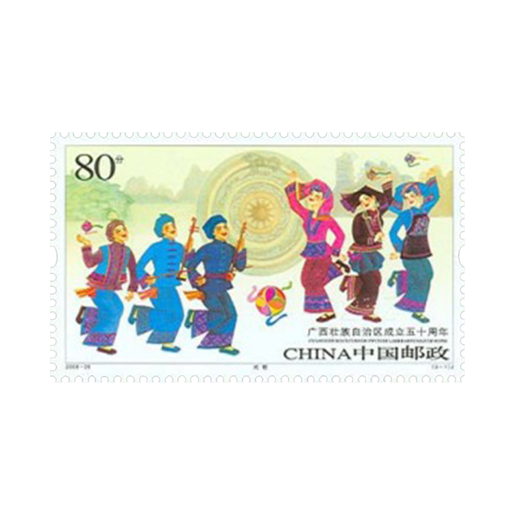 2008年10月18日,为纪念《广西壮族自治区成立50周年》发行该套邮票,全套共3枚。