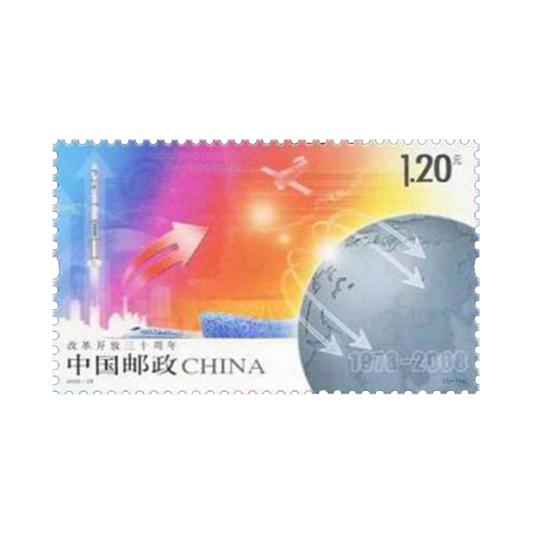 2008年12月18日发行《改革开放三十周年》纪念邮票1套1枚,小型张1枚。