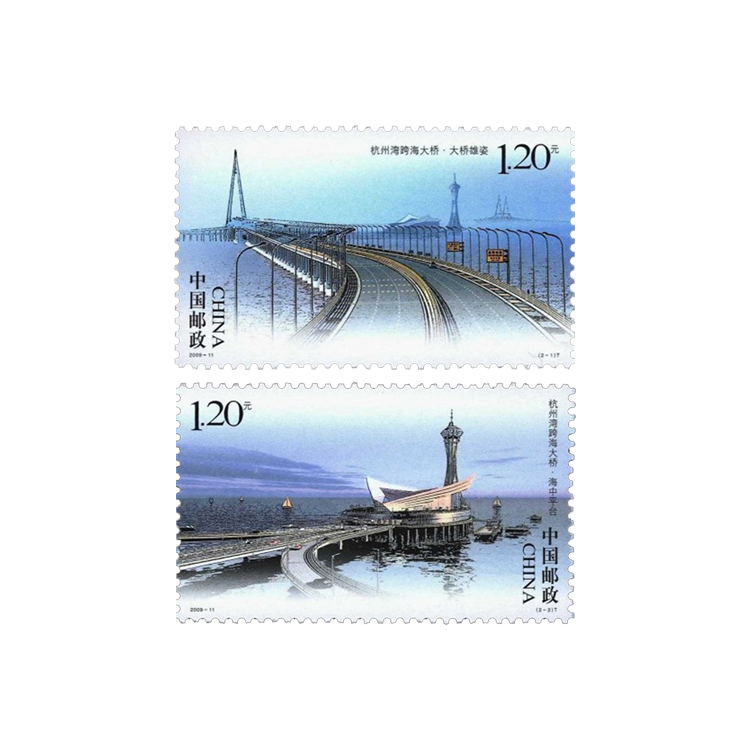 2009年6月18日,为纪念杭州湾跨海大桥建成发行该套邮票,全套共2枚。