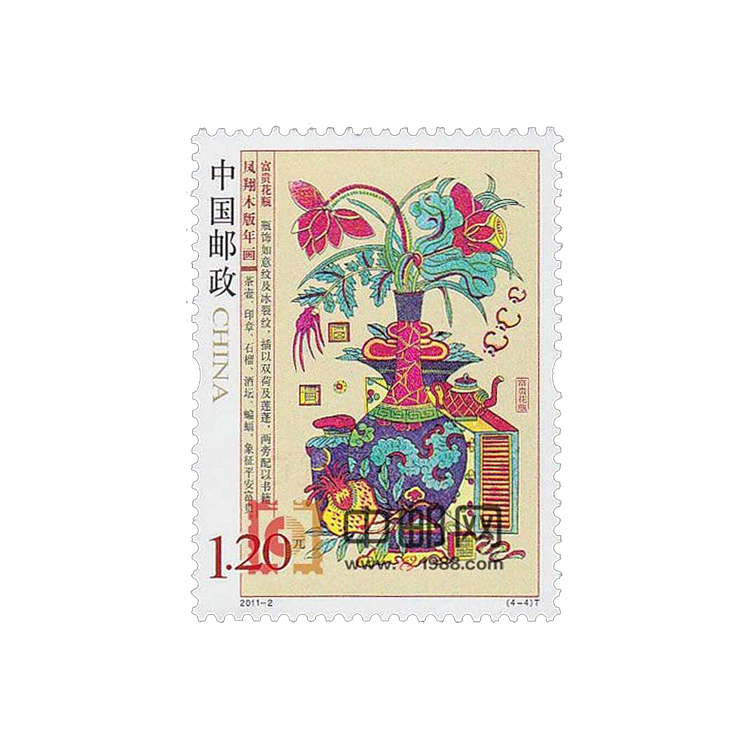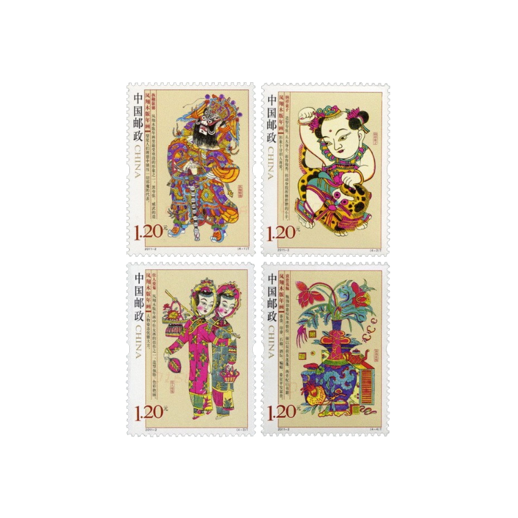 中国邮政定于2011年1月10日发行《凤翔木版年画》特种邮票1套4枚。