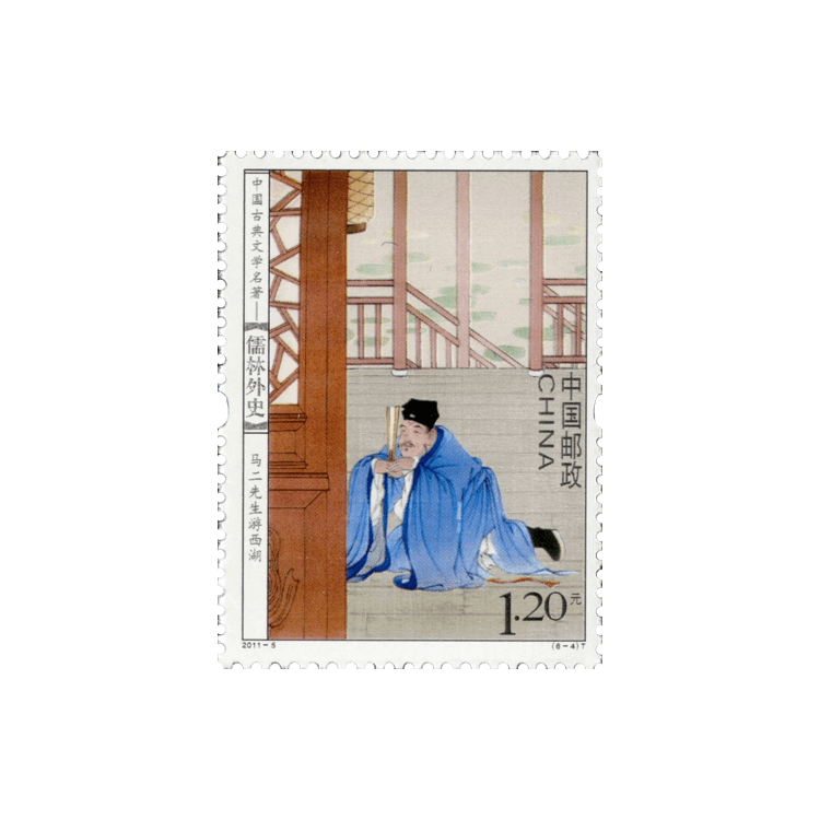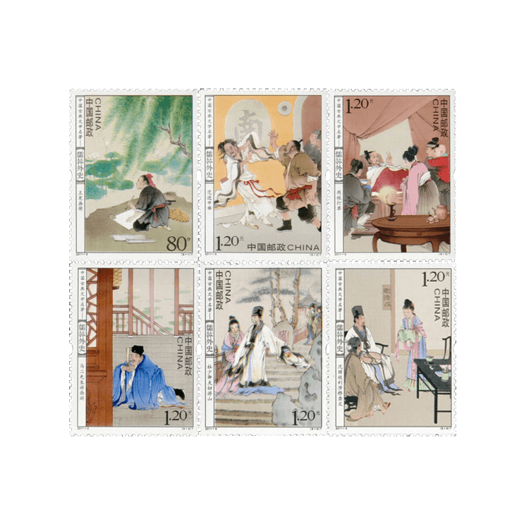 中国邮政定于2011年3月21日发行《中国古典文学名著——〈儒林外史〉》特种邮票1套6枚。