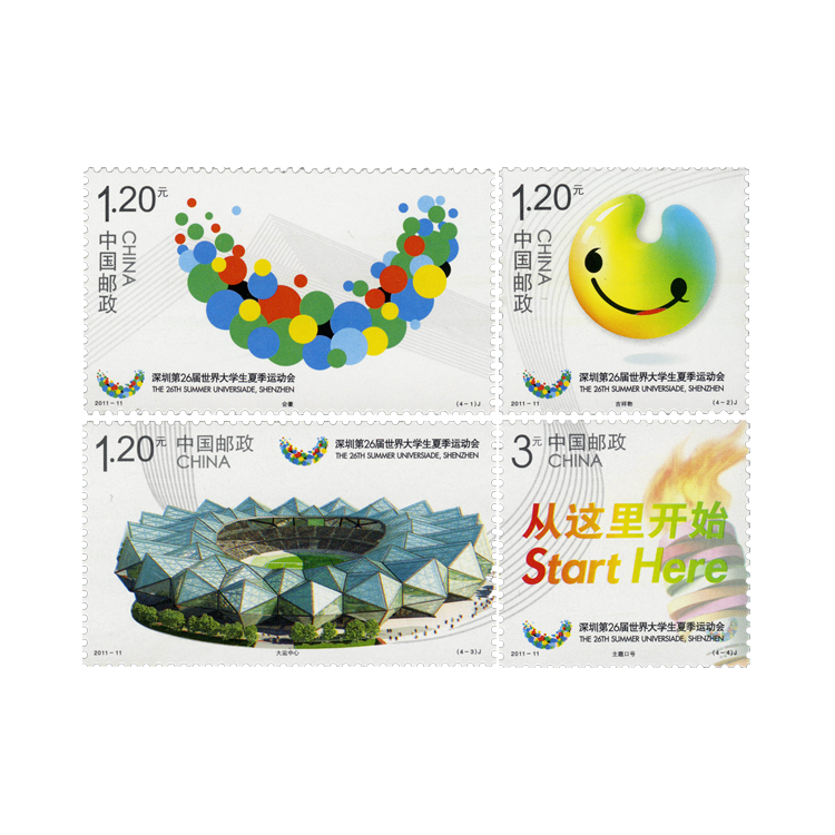 中国邮政定于2011年5月4日发行《深圳第26届世界大学生夏季运动会》纪念邮票1套4枚。