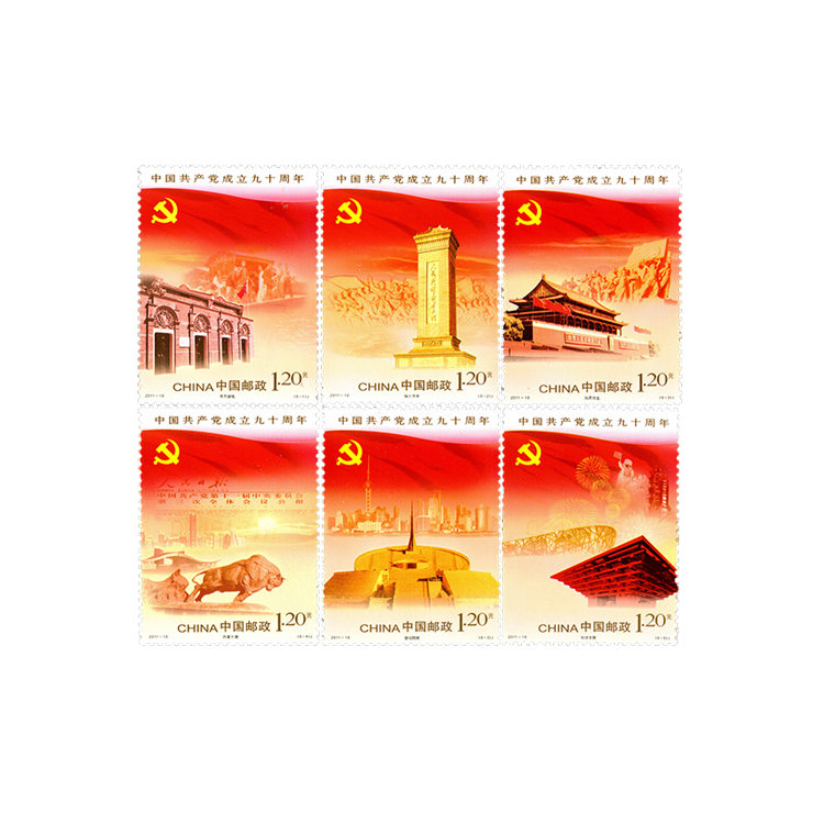 1921年7月23日,中国共产党第一次全国代表大会在上海召开,最后一天的会议转移到浙江嘉兴南湖举行。中国共产党自诞生以来,取得了新民主主义革命的胜利,实现了民族独立和民族解放,建立了人民当家做主的新中国。新中国成立后,进行了社会主义革命和社会主义建设,建立了社会主义的基本制度,初步建立了比较完整的工业化体系和国民经济体系。改革开放以来,创立和建设了有中国特色的社会主义,大力推进社会主义现代化事业。2011年是中国共产党成立90周年。按惯例,逢整十周年安排发行纪念邮票。
