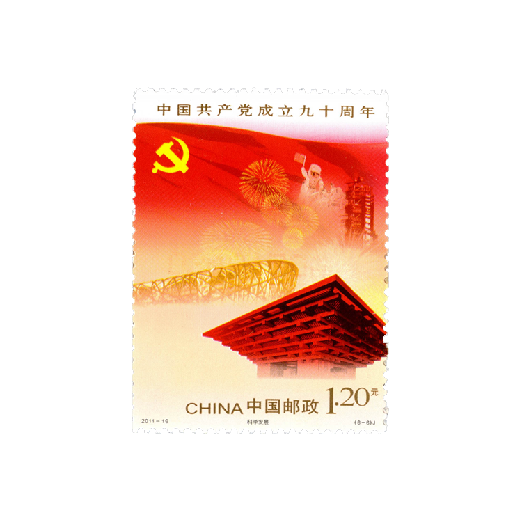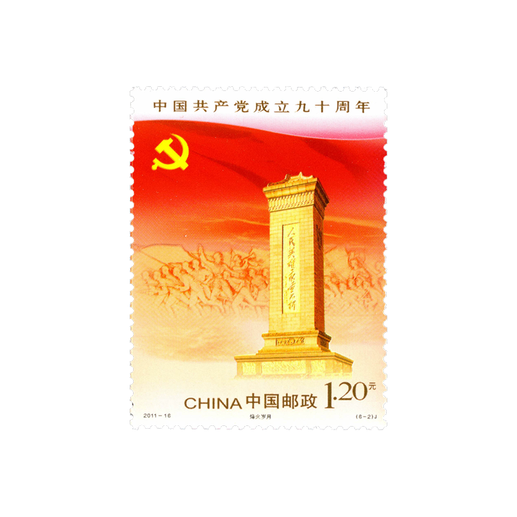 中国邮政2011年6月22日发行《中国共产党成立九十周年》纪念邮票,1套6枚,小型张1枚。