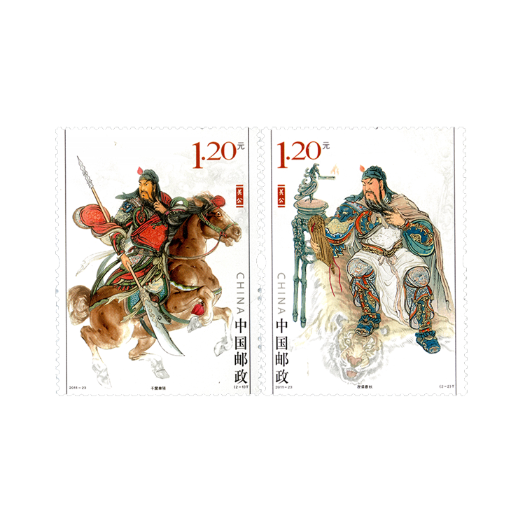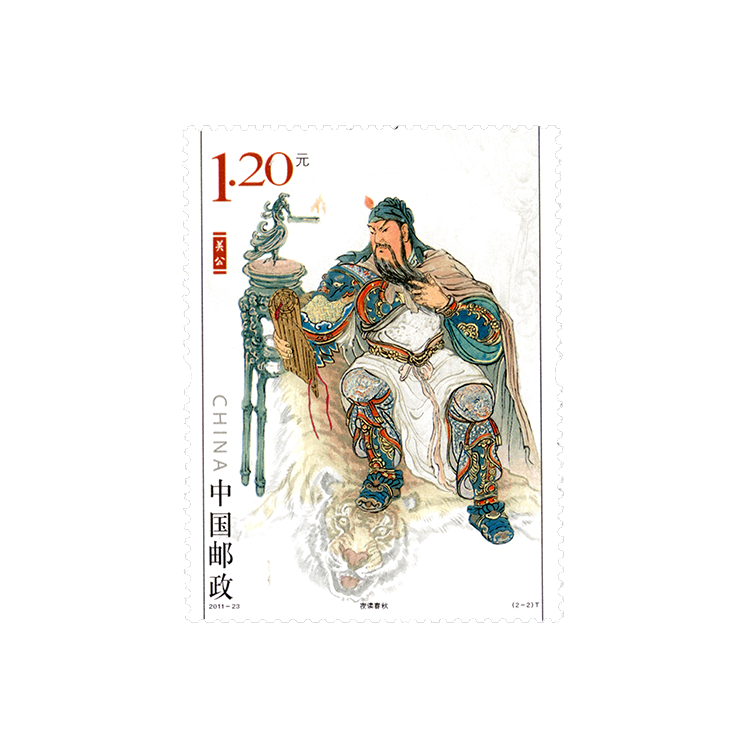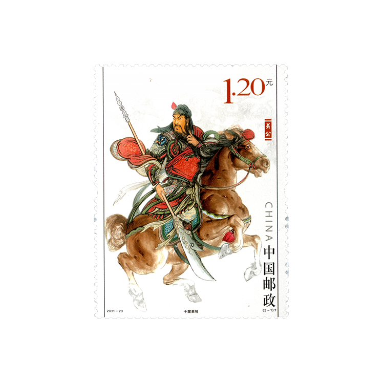 中国邮政2011年9月12日发行《关公》特种邮票,1套2枚,小型张1枚。