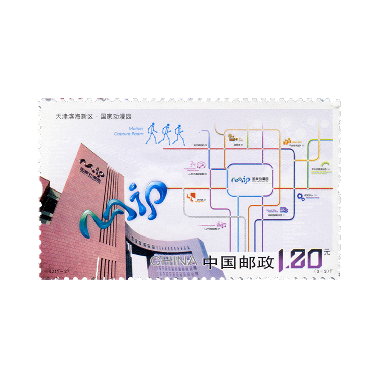 (3-3)邮票《天津滨海新区国家动漫园》国家动漫园坐落在中新天津生态城。中新天津生态城是中国与新加坡两国政府间战略合作的旗舰项目,也是世界上第一个国家间合作开发的生态城市,具有重要的国际地位和示范效用。