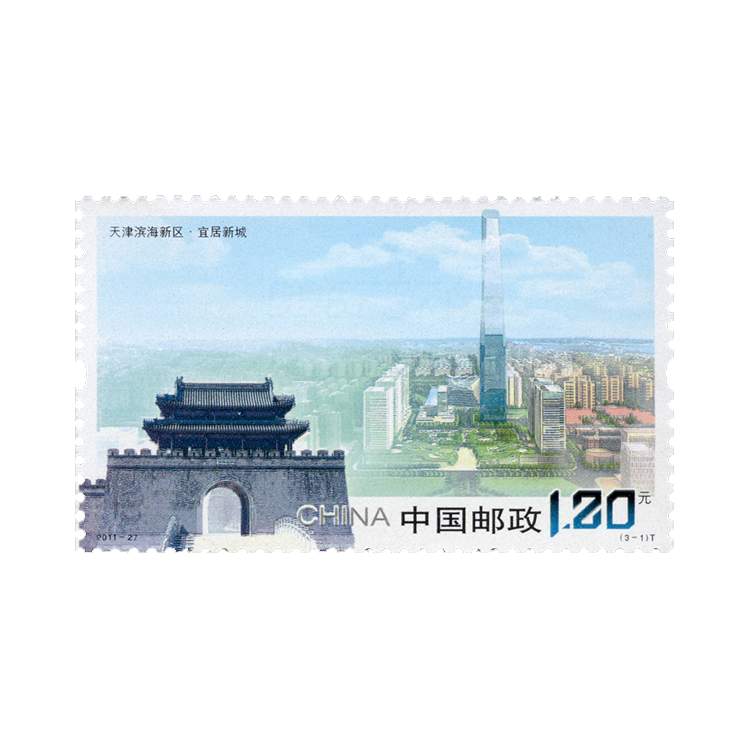 2011年10月21日上午,《天津滨海新区》特种邮票首发,并在五大洲10个国家同步发行。这是迄今中国邮政发行的唯一一套主题为天津城市建设的邮票,填补了天津题材邮票的一项空白。滨海新区走上“国家名片”也将进一步提升天津及滨海新区的影响力。
