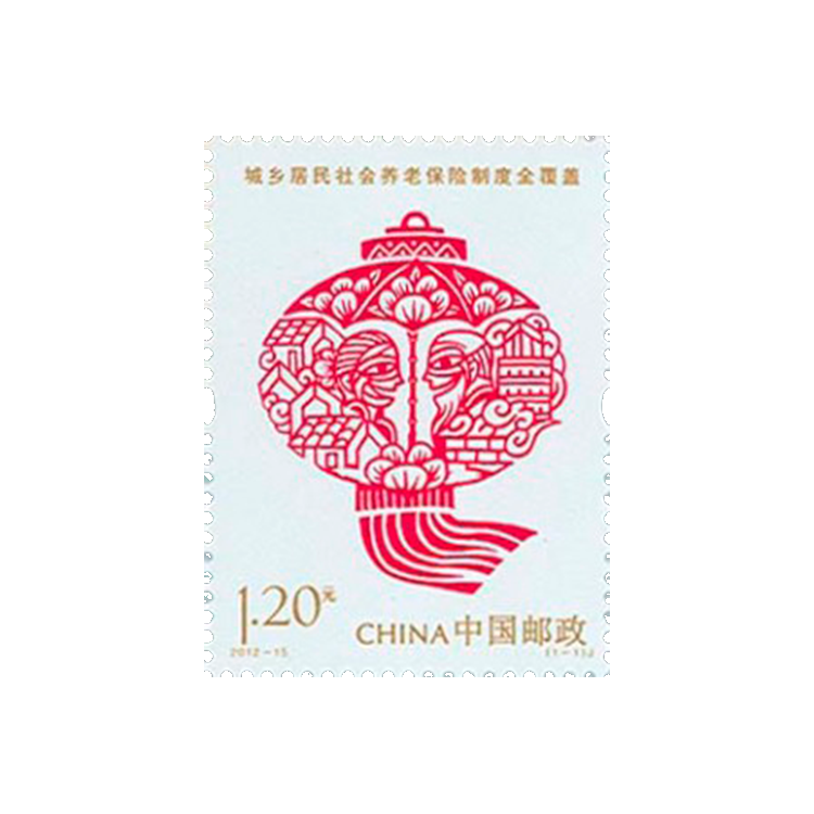 中国邮政定于2012年7月1日发行《城乡居民社会养老保险制度全覆盖》纪念邮票1套1枚。