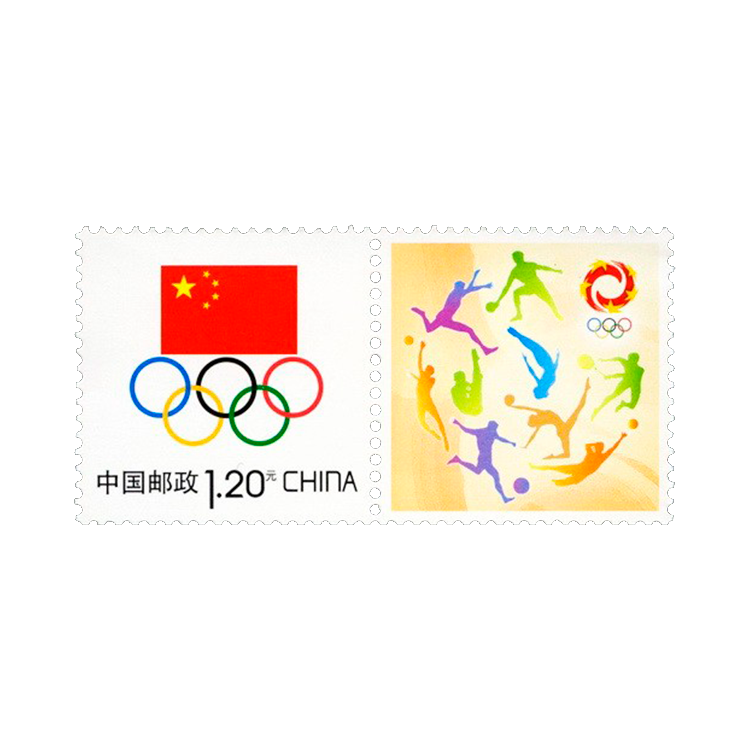 此次发行的个性化服务专用邮票主图为中国国旗和奥运五环标志组成的中国奥委会会徽,附图为中国奥委会商用徽志及奥运比赛各项运动的代表图案,色彩鲜明富有活力,突出体现了奥运精神。