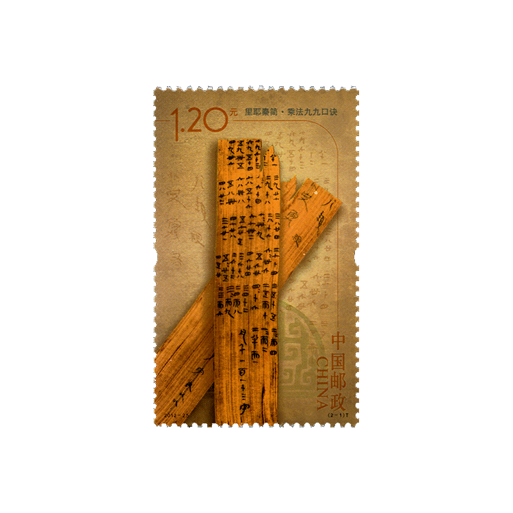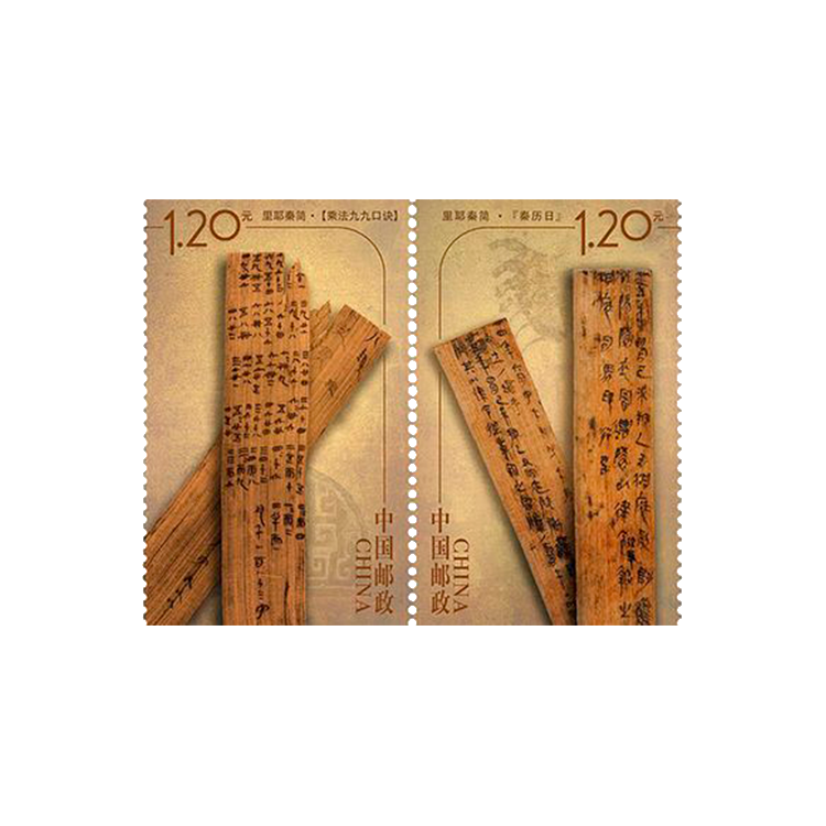该套邮票分别选取了“九九乘法口诀”、“秦历日”,所反应内容代表了当时的科技文化水平,在里耶秦简中最具研究价值。该套邮票设计典雅,质地古朴,印制精美,充分表现了秦代简牍的风采。