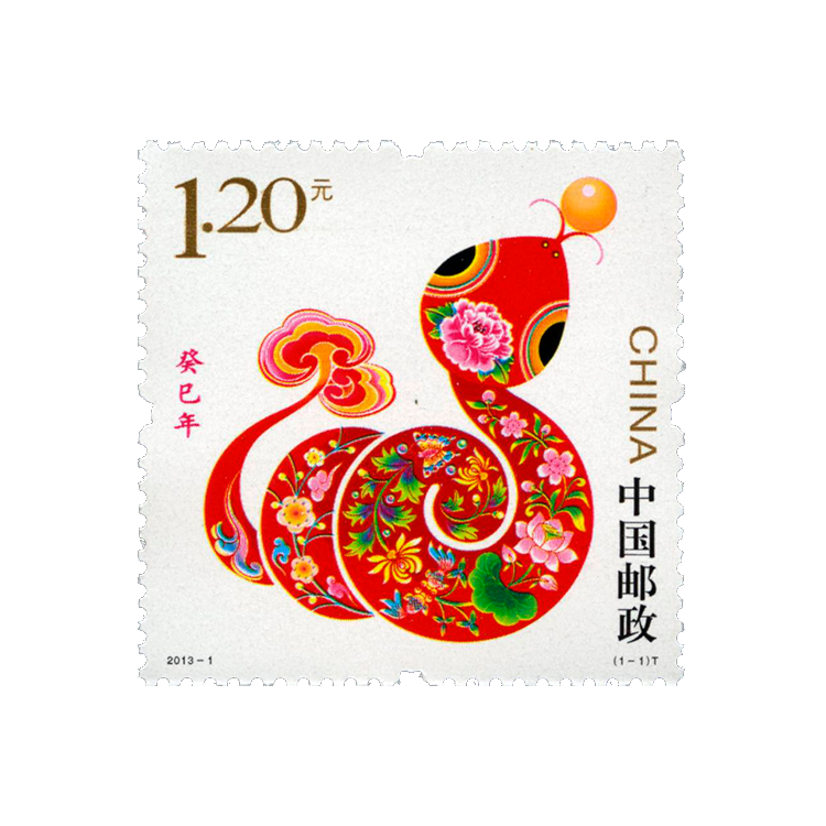 中国邮政定于2013年1月5日发行《癸巳年》特种邮票1套1枚,小本票1本。