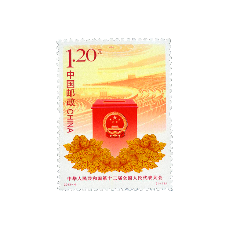 中国邮政定于2013年3月5日发行《中华人民共和国第十二届全国人民代表大会》纪念邮票1套1枚。