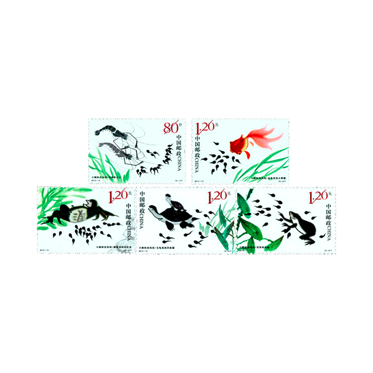 《小蝌蚪找妈妈》邮票主要是根据小蝌蚪寻找妈妈的过程作为脉络来延展设计的,邮票的设计资料源自动画片《小蝌蚪找妈妈》,这是一部几代中国人都熟知、喜爱的动画片,作为第一部水墨动画,以其独特的风格曾引起世界轰动,在国际上赢得众多荣誉,动画片中的形象据说取材于齐白石的鱼虾形象,意境优美,气韵生动。