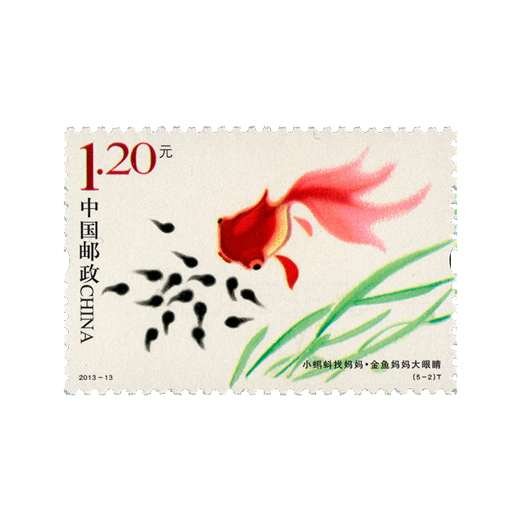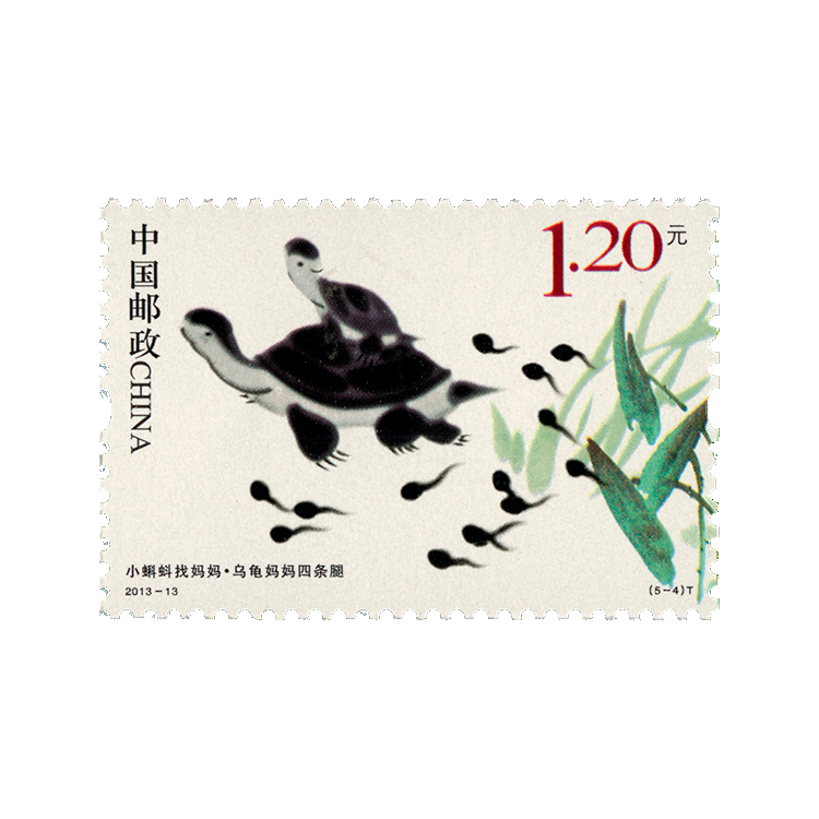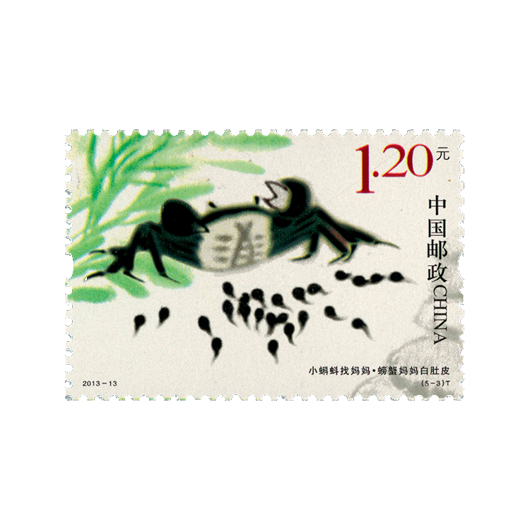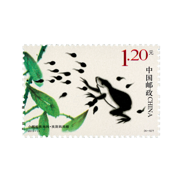 中国邮政定于2013年6月1日发行《小蝌蚪找妈妈》特种邮票1套5枚,小本票1本。