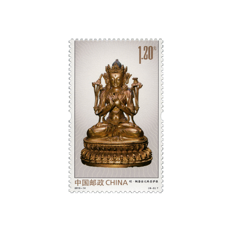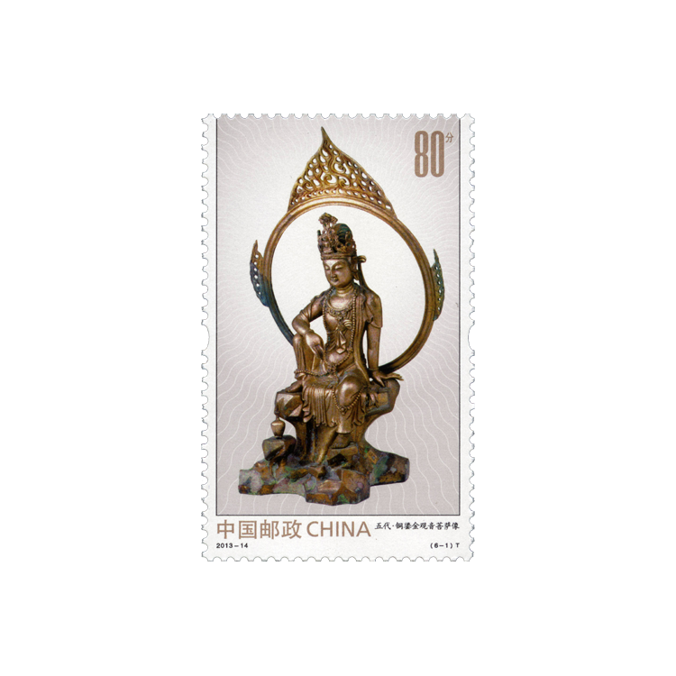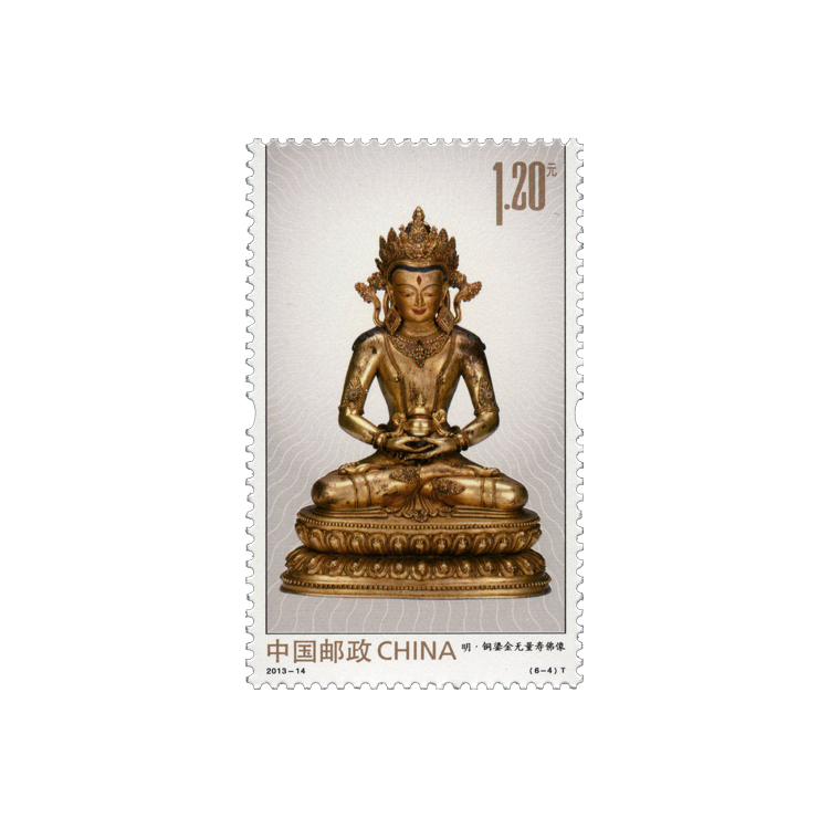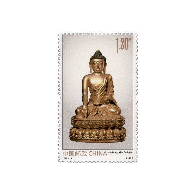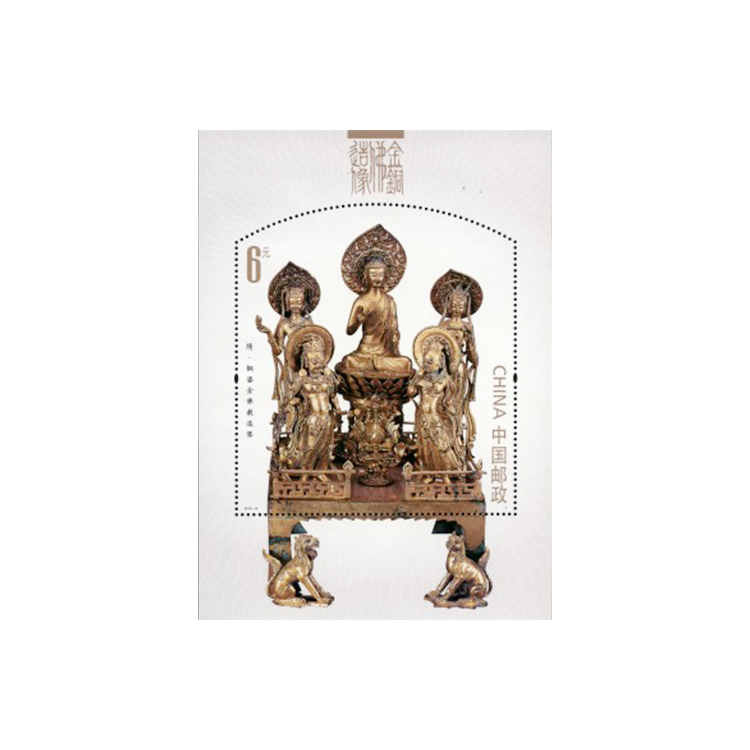 中国邮政定于2013年6月16日发行《金铜佛造像》特种邮票1套6枚,小型张1枚。