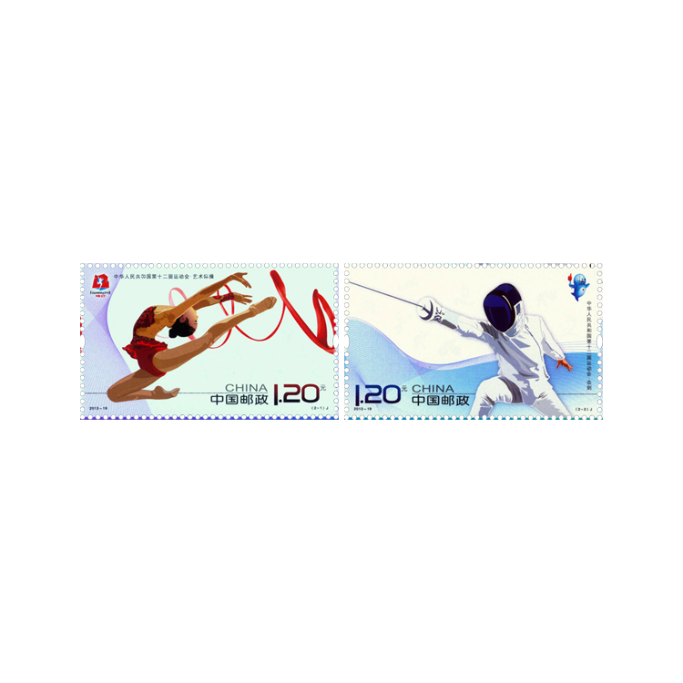 中国邮政2013年8月31日发行《中华人民共和国第十二届运动会》纪念邮票1套2枚,小全张1枚。