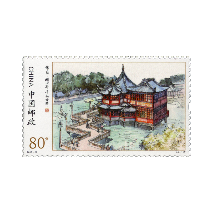鉴于豫园在中国古典园林中的地位,为了更好地宣传、保护这一文物古迹。中国邮政将于2013年9月7日发行《豫园》特种邮票一套,共4枚。分别是:湖心亭与九曲桥;大假山;卷雨楼;玉玲珑。