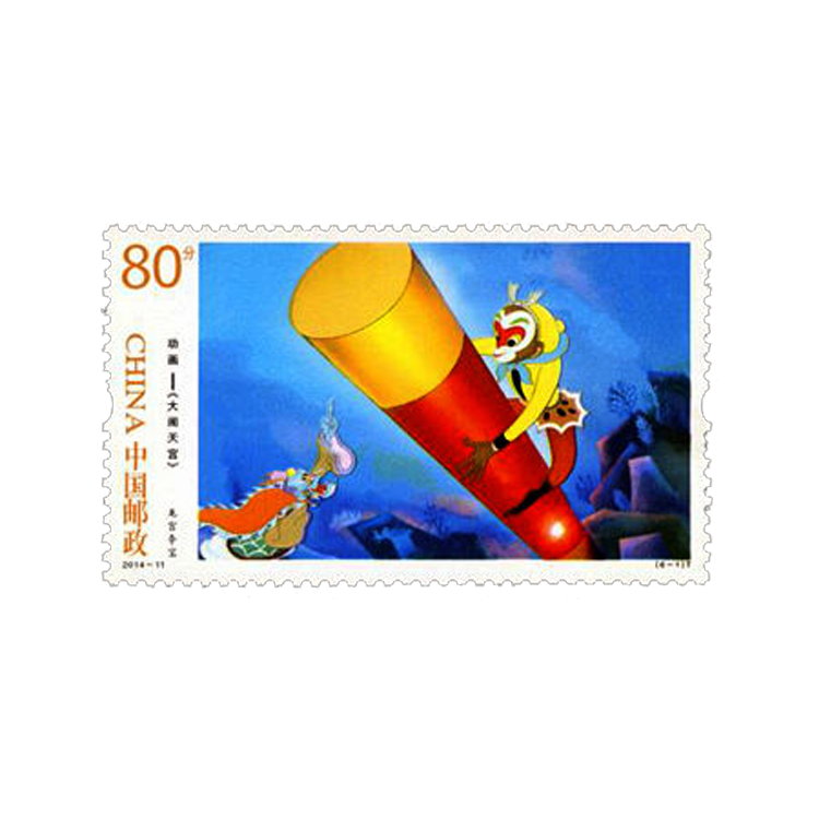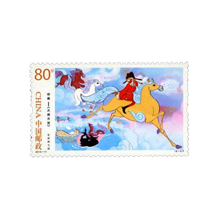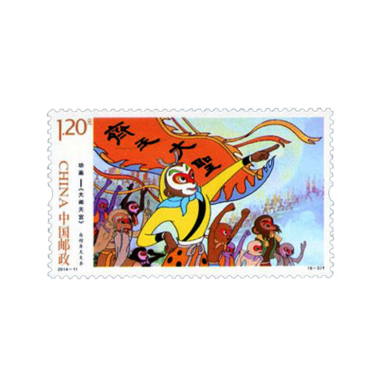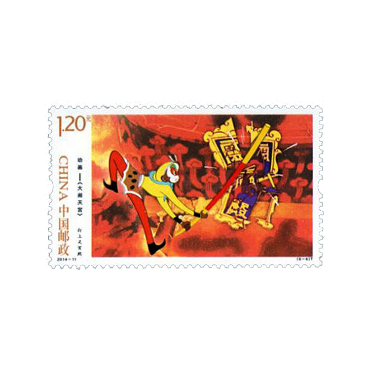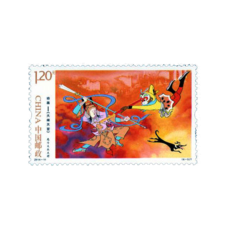 中国邮政定于2014年6月1日发行《动画-〈大闹天宫〉》特种邮票1套6枚,小本票1本。