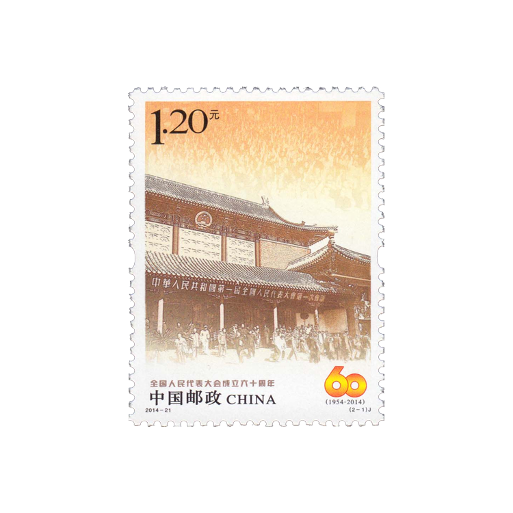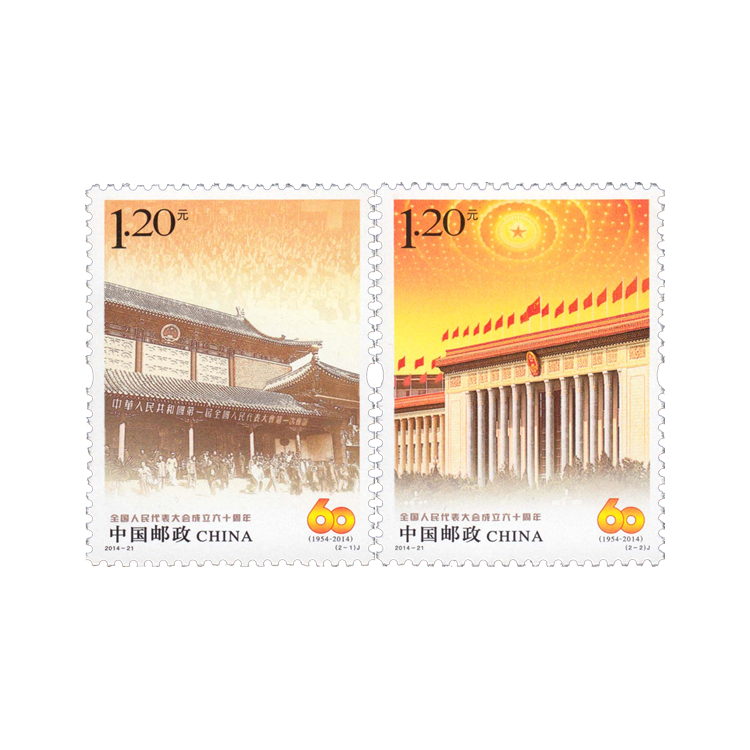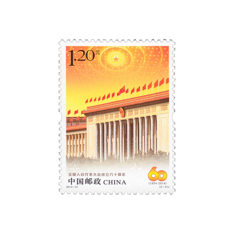 中国邮政定于2014年9月15日发行《全国人民代表大会成立六十周年》纪念邮票1套2枚。
