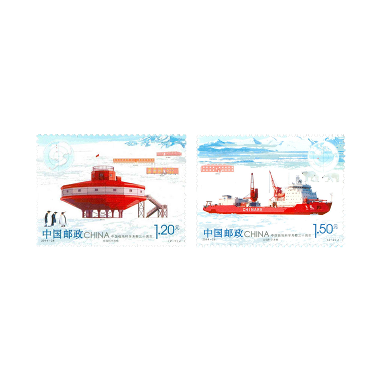 中国邮政定于2014年11月20日发行《中国极地科学考察三十周年》纪念邮票1套2枚。