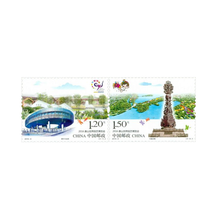 中国邮政2016年4月29日发行《2016唐山世界园艺博览会》纪念邮票1套2枚。