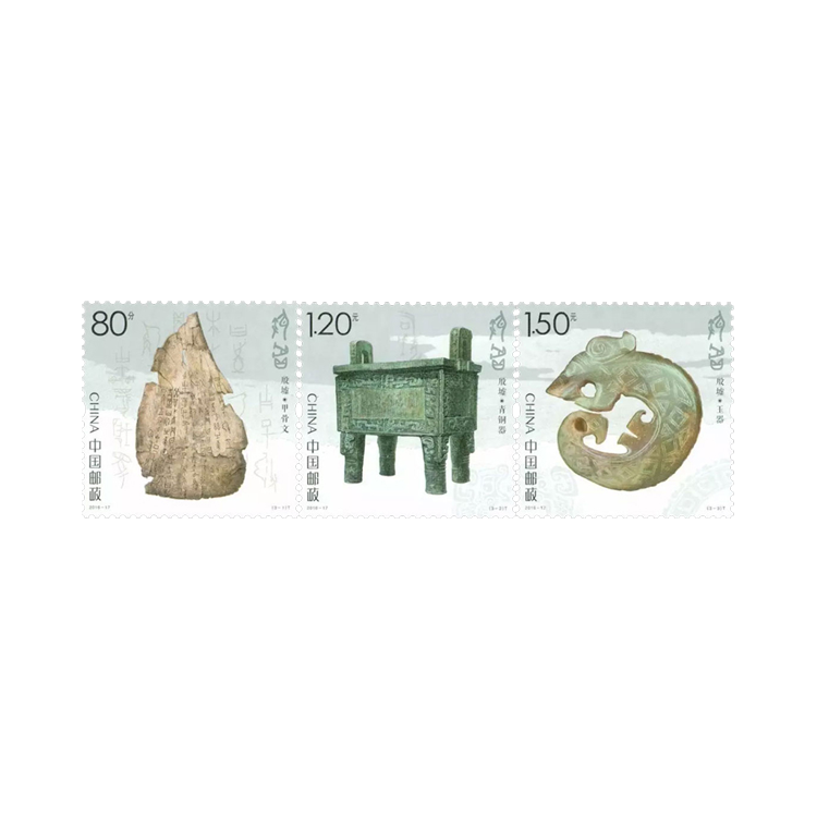 中国邮政定于2016年7月13日发行《殷墟》特种邮票1套3枚。