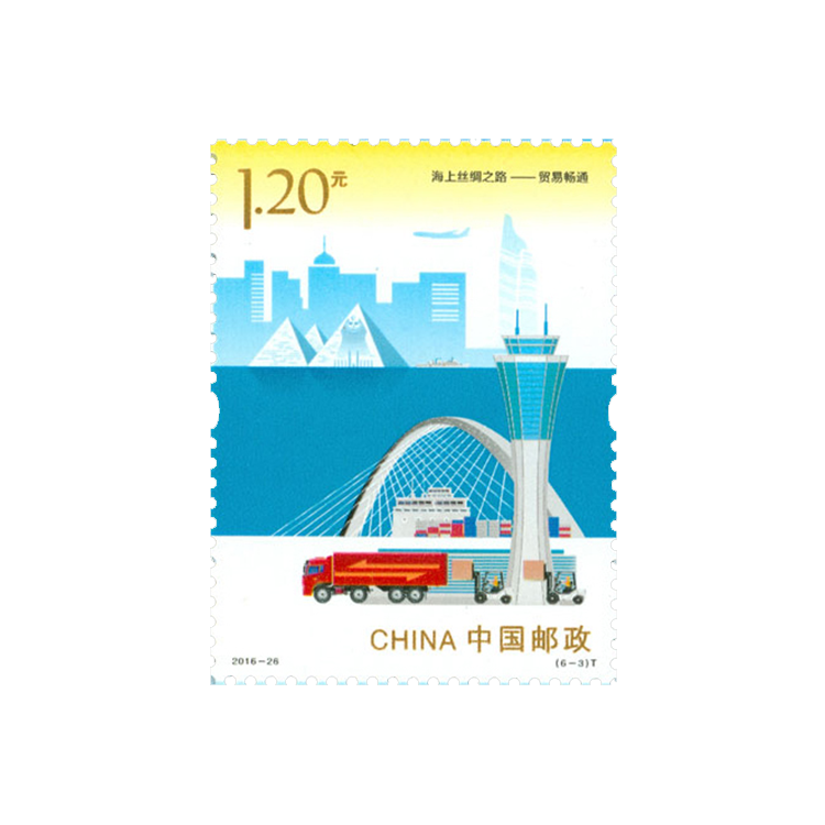 中国邮政定于2016年9月10日发行《海上丝绸之路》特种邮票1套6枚,小全张1枚。