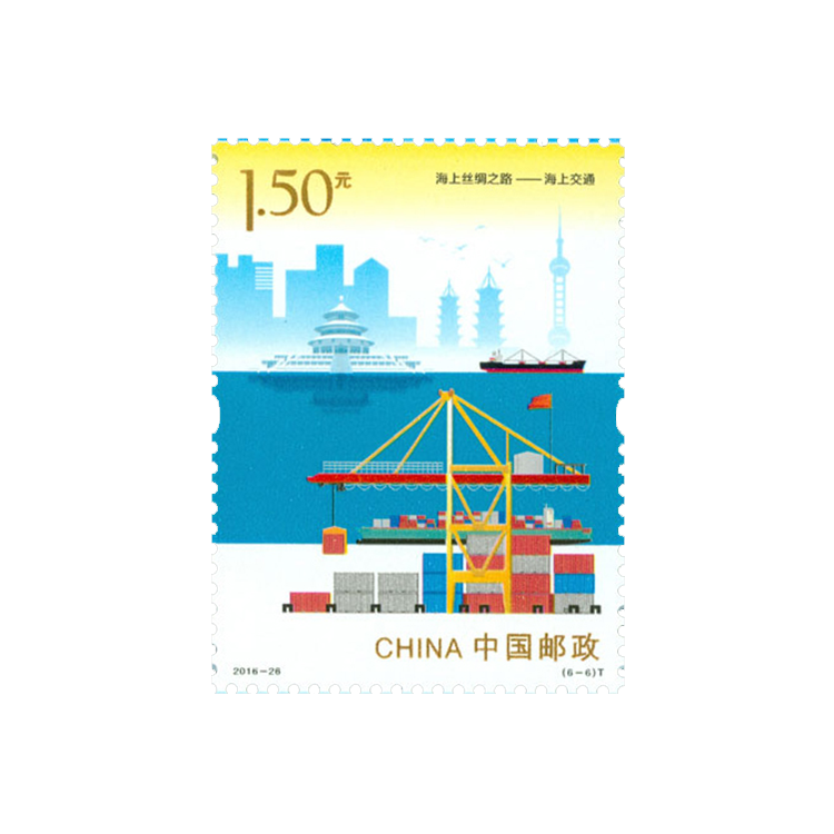 中国邮政2016年9月10日发行《海上丝绸之路》特种邮票1套6枚,小全张1枚。