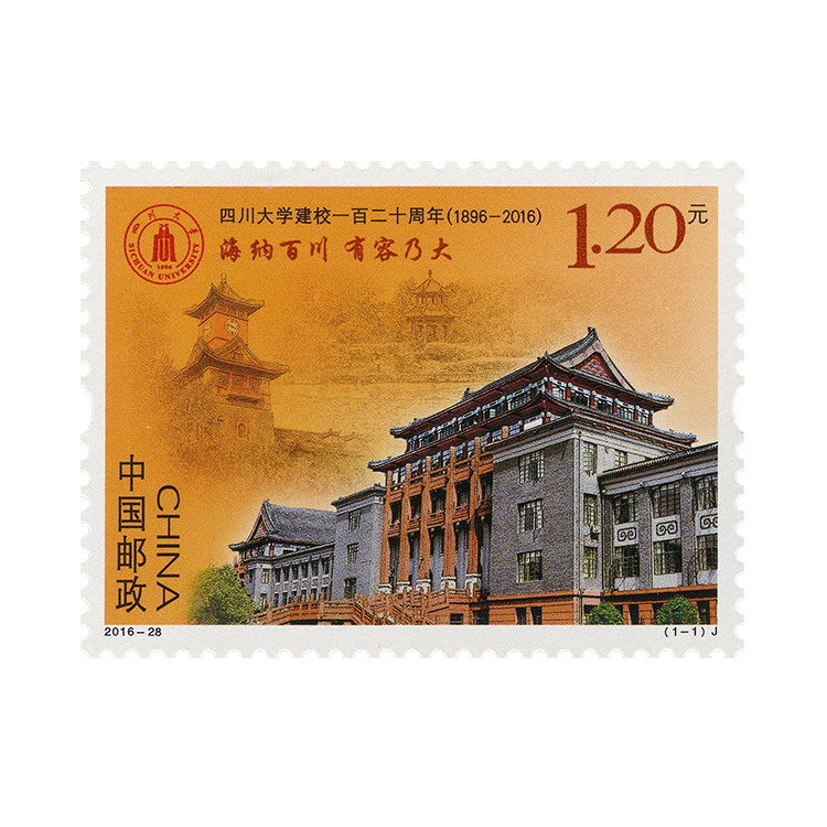 中国邮政定于2016年9月28日发行《四川大学建校一百二十周年》纪念邮票1套1枚。
