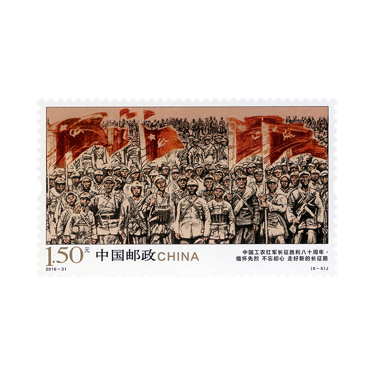 中国邮政2016年10月22日发行《中国工农红军长征胜利八十周年》纪念邮票1套6枚。