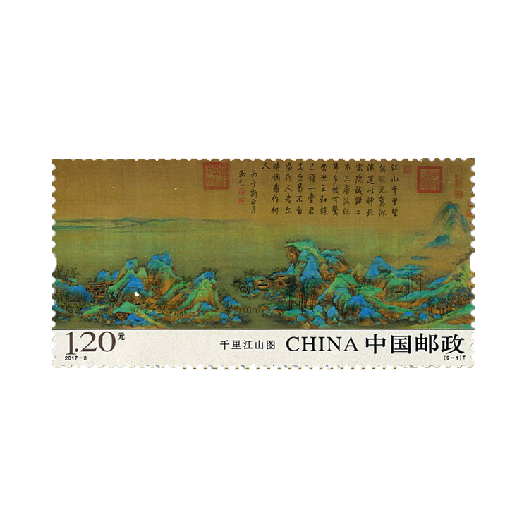中国邮政2017年2月25日发行《千里江山图》邮票一套9枚。