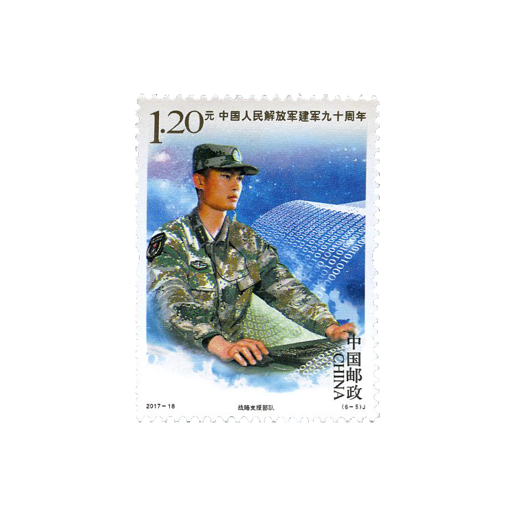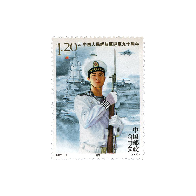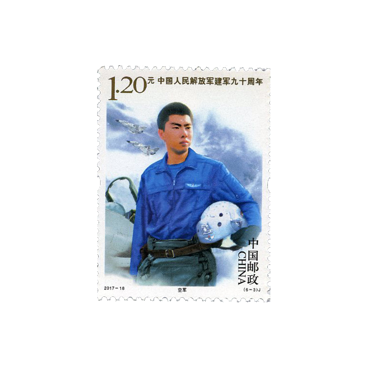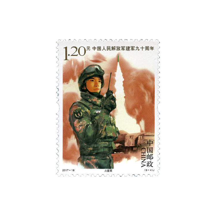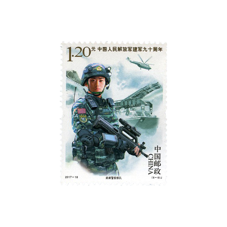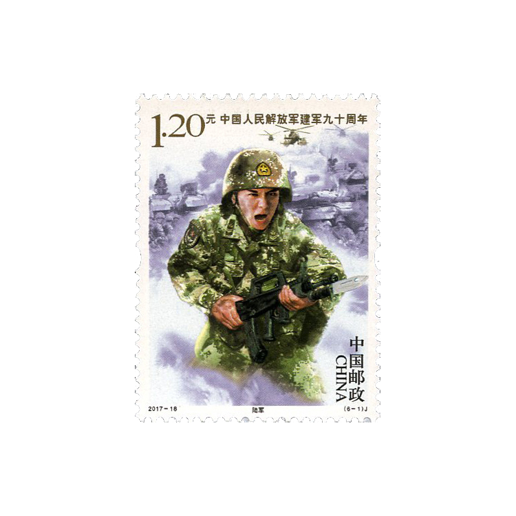 2017年8月1日中国邮政发行《中国人民解放军建军九十周年》纪念邮票,一套6枚,小型张1枚。
