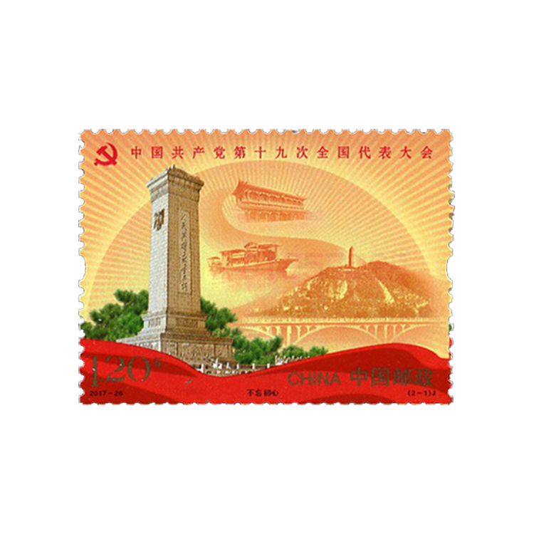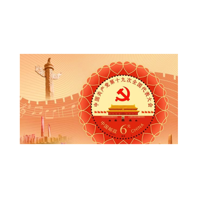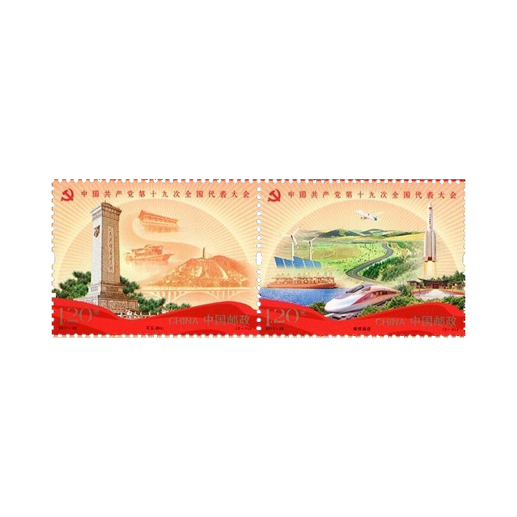 中国邮政定于2017年10月18日发行《中国共产党第十九次全国代表大会》纪念邮票1套2枚,小型张1枚。