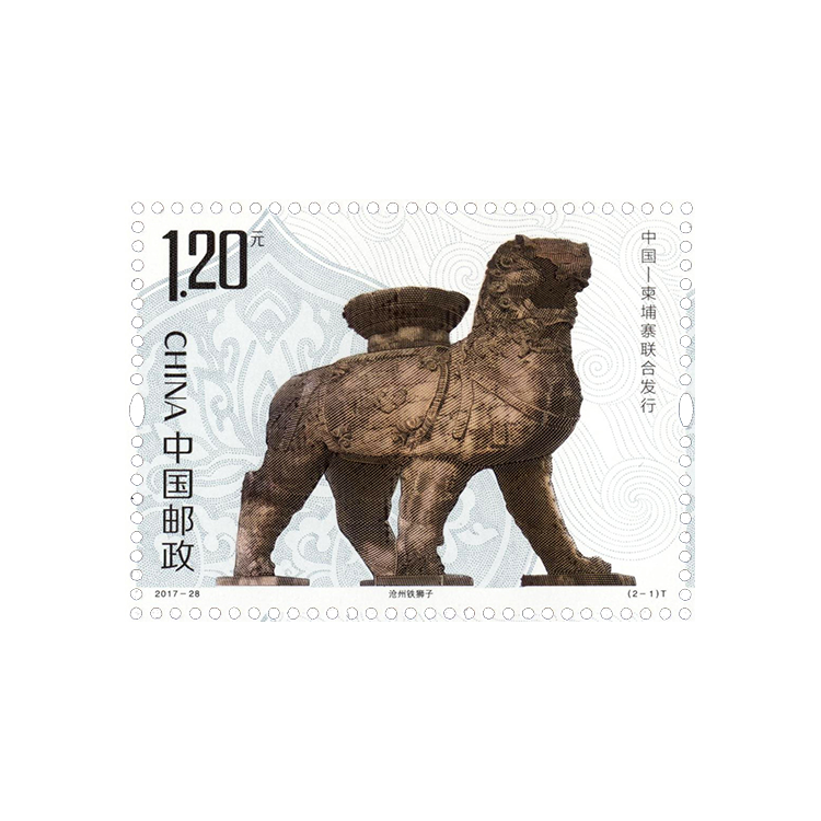 中国邮政定于2017年11月16日发行《沧州铁狮子与巴肯寺狮子》特种邮票1套2枚(与柬埔寨联合发行)。