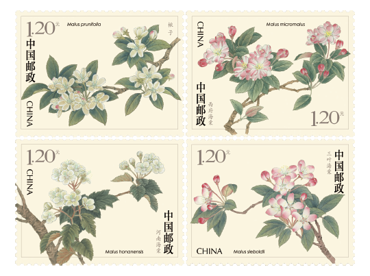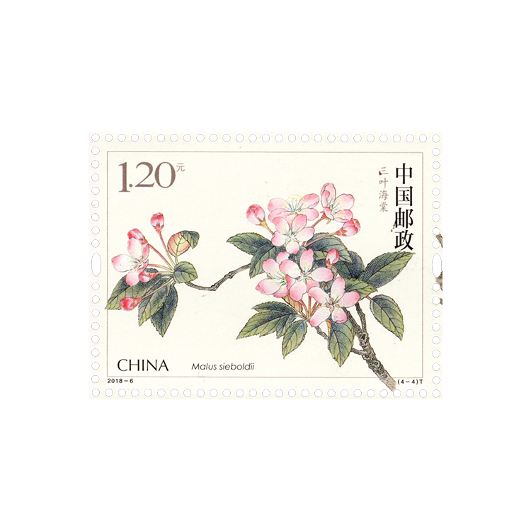 中国邮政定于2018年3月25日发行《海棠花》特种邮票1套4枚。