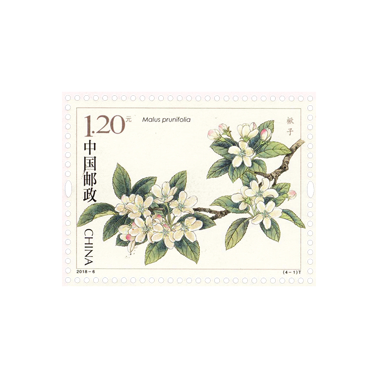 本套邮票展现了楸子、西府海棠、河南海棠、三叶海棠四个品种。其中,西府海棠因曾得到周恩来总理的喜爱而闻名。2018年是周恩来同志120周年诞辰,本套邮票的发行也体现了对这位伟人的纪念。本套邮票采用传统的中国工笔画法,以花枝局部为中心,精谨细腻地描绘出唯美的画面效果,画面中既有肆意盛开的花朵,也有含苞未放的蓓蕾,花瓣、花丝、叶片,栩栩如生。画面整体背景为淡雅米色,突出了海棠花的素雅风骨。