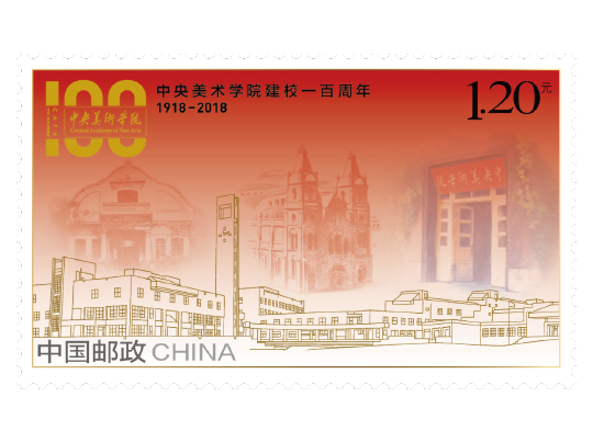 中国邮政定于2018年4月1日发行《中央美术学院建校一百周年》纪念邮票一套1枚。