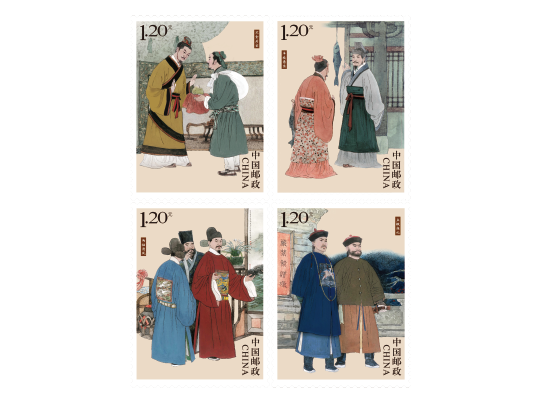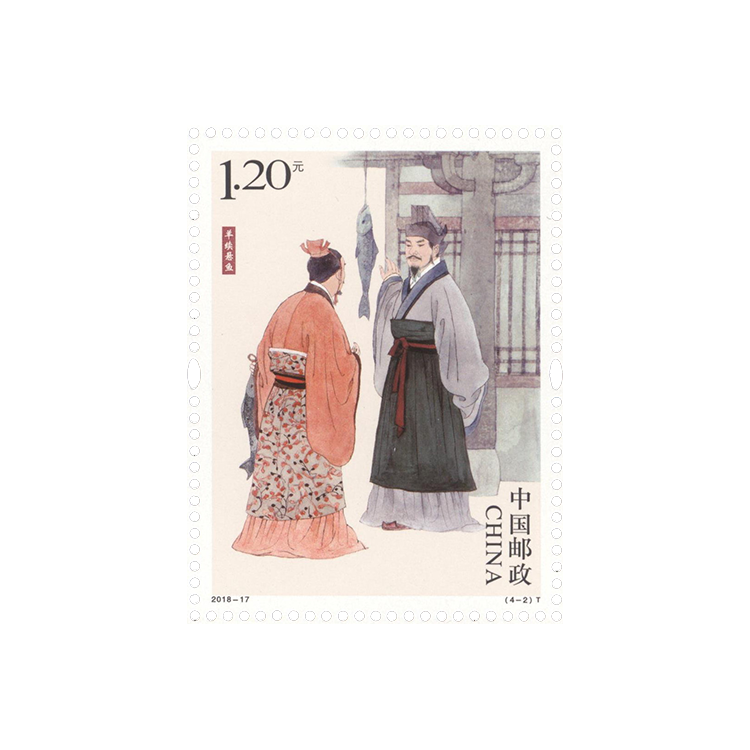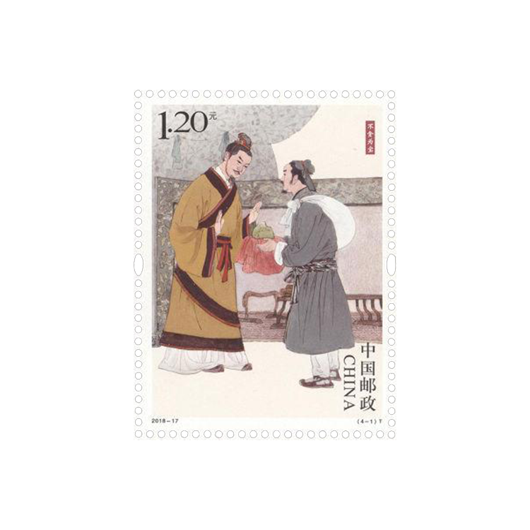 邮票选取中国古代从春秋时期到清代4个广为流传的古人居官正直,廉洁自律的故事。